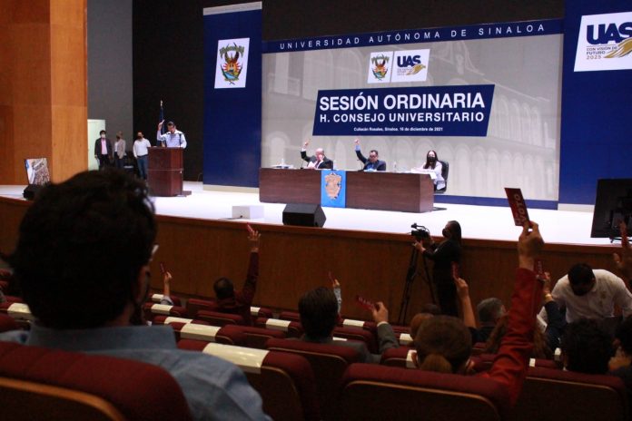 Culiacán, Sin. Desde el pleno del H. Consejo Universitario, el Rector de la Universidad Autónoma de Sinaloa (UAS), doctor Jesús Madueña Molina, expresó un agradecimiento especial al Gobernador del Estado, doctor Rubén Rocha Moya, y al Gobierno Federal por su apoyo que permitió a la institución pagar este miércoles 15 de diciembre el aguinaldo a los más de 17 mil trabajadores universitarios.