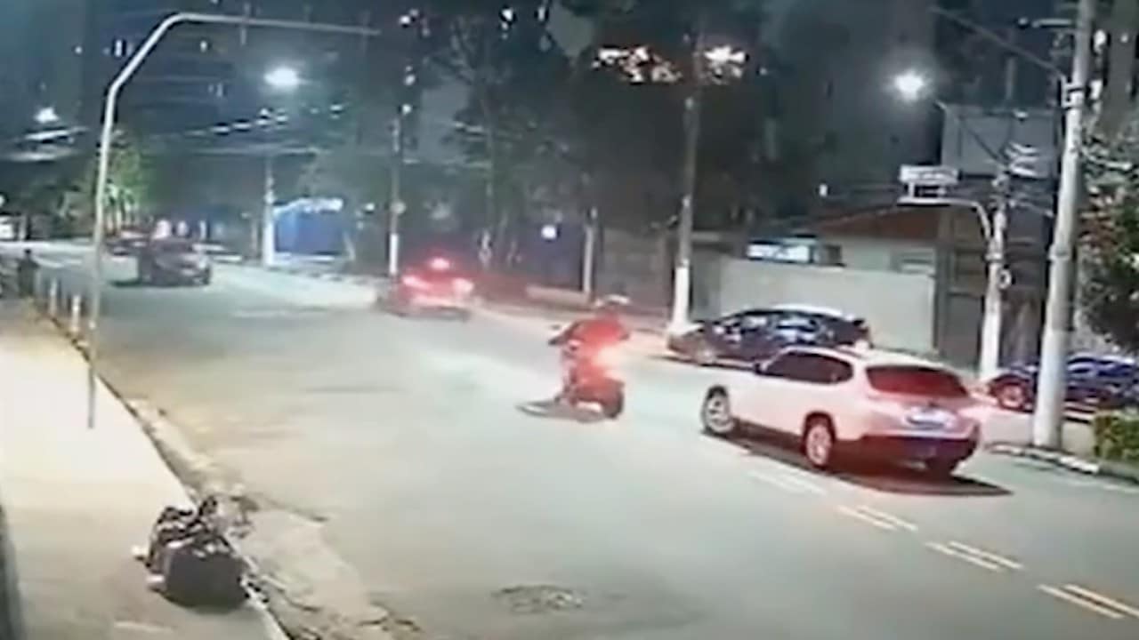 En redes sociales circula el video del momento en el que una mujer atropella a dos sujetos a bordo de una motocicleta que querían asaltarla.