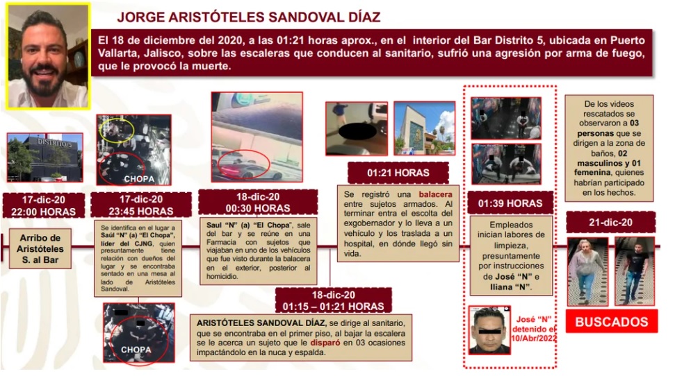 Ciudad de México.- El asesinato del ex gobernador de Jalisco, Aristóteles Sandoval, continúa avanzando en investigaciones. La nueva pista del caso se ha dado a conocer este miércoles por el gobierno federal, que ha detallado que el ex mandatario convivió con un capo del Cártel Jalisco Nueva Generación (CJNG) el día de su muerte.