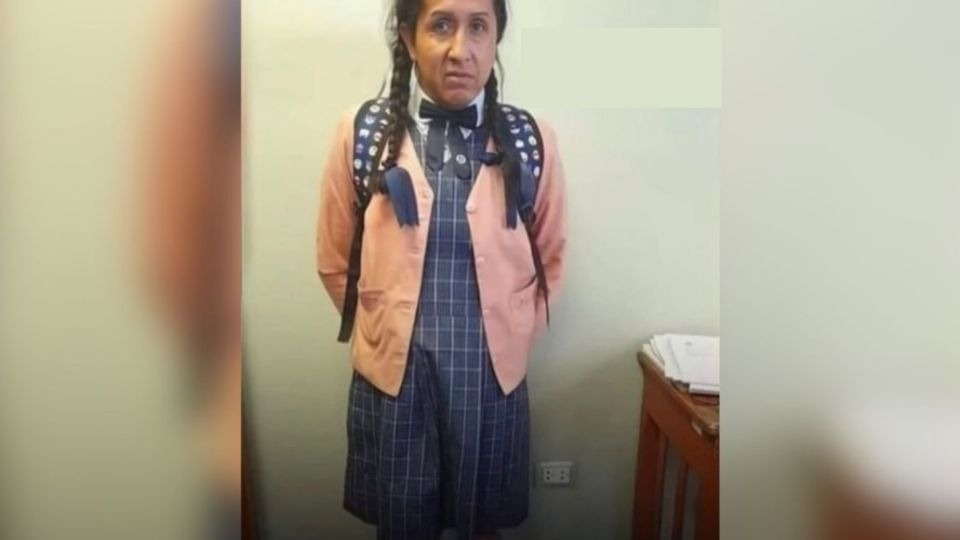 El sujeto de 50 años de edad, vestía el uniforme escolar del colegio e iba peinado con dos trenzas