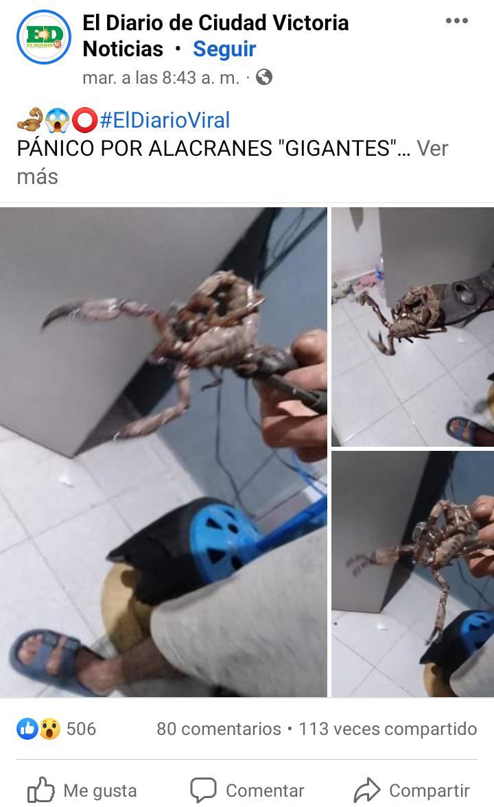 El insecto tomó por sorpresa al hombre, que no podía creer la presencia de alacranes de gran tamaño, pues es inusual que aparezcan en la zona.