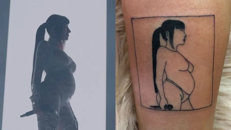 Una joven rindió homenaje a la rapera argentina Cazzu, tatuándose su silueta estando embarazada. La sudamericana espera un bebé con el cantante del género regional mexicano Christian Nodal.