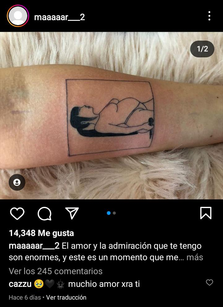 Por medio de Instagram, una fan identificada como Martina dio a conocer que se tatuó la silueta de Julieta Emilia Cazzuchelli, nombre real de Cazzu, en inspiración al momento en que reveló su embarazo durante un concierto en Buenos Aires en la Movistar Arena.