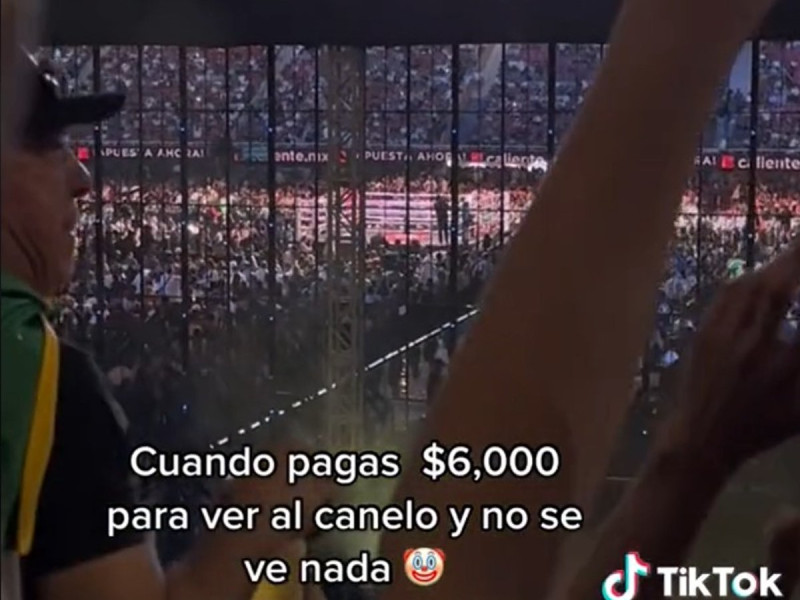 El mensaje de “Cuando pagas 6 mil pesos para ver al Canelo y no se ve nada”, sobre el video muestra la vista parcial que tenían los aficionados en esa zona ya en la parte bajo del estadio, pero en ringside.