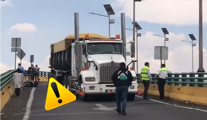 Estado de México.- En la curva de un puente, el chofer de un tráiler pensó que un neumático se había averiado. No era la llanta sino el cuerpo de un motociclista que al derrapar cayó debajo del tráiler que lo mató.