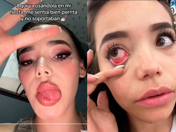 En el clip se observa a la joven usando el maquillaje, sin embargo, explica que tiempo después sintió algo raro en uno de sus ojos, e incluso muestra como se ha enrojecido, por lo que acudió con un especialista.