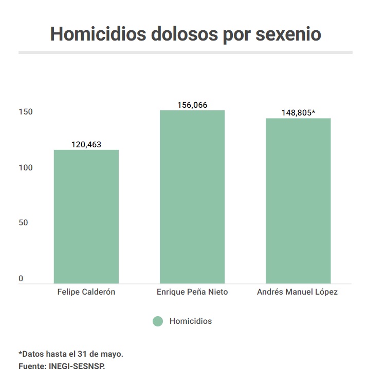 El propio presidente Andrés Manuel López Obrador ha reconocido que su sexenio es el de más muertes intencionales, pero lo atribuye a la herencia de los gobiernos de Felipe Calderón y Enrique Peña Nieto.