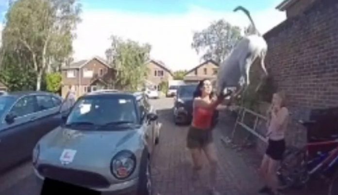 Todo pasó cuando una familia salía de casa, al parecer una mujer -quien sería la madre- se alistaba a subir a un vehículo, sin embargo, su pequeña le advirtió que el lomito se lanzaba del techo.