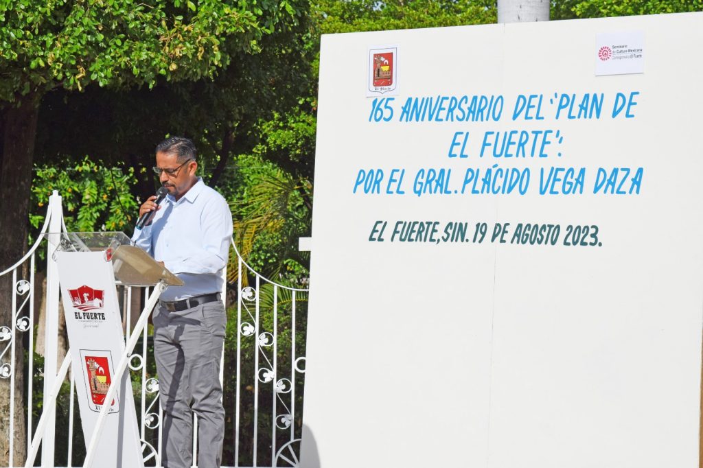 El Fuerte, Sin.- El Ayuntamiento de El Fuerte, a través de la Dirección de Educación y Cultura, realizó un acto cívico con el objetivo de conmemorar el 165 Aniversario de la Promulgación de El Plan de El Fuerte, por el General Placido Vega y Daza, suceso de gran relevancia en la historia del municipio.