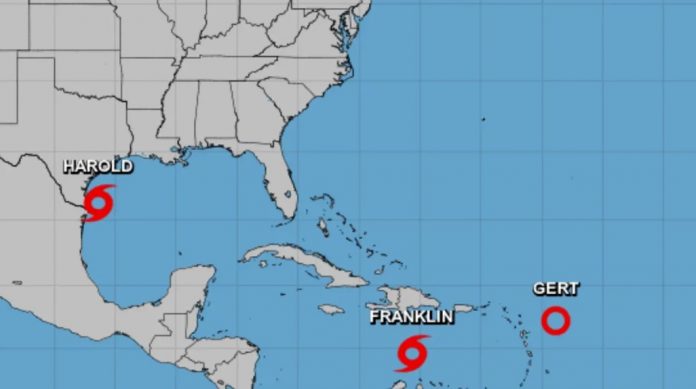 Ciudad de México.- La tormenta tropical Harold, formada durante la noche del lunes en el Golfo de México, tocará tierra este martes en el sur de Texas, mientras en el Caribe Franklin se mueve de manera lenta y desorganizada hacia la costa sur de La Española (República Dominicana y Haití), donde ya se sienten sus lluvias.