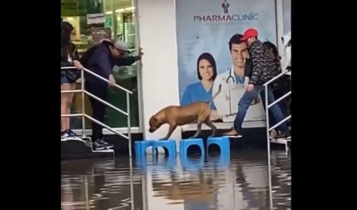 Tal es el caso del video que se ha comenzado a hacer viral en redes sociales donde un par de comerciantes hacen un ‘puente’ de bancos para que un perrito pueda cruzar sin mojarse de un lugar a otro.