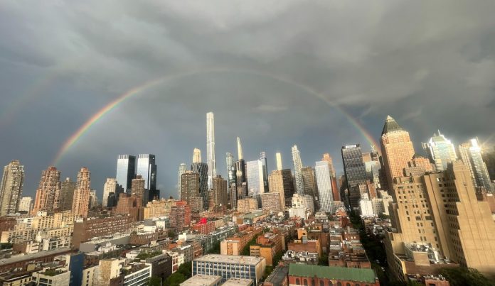 “¡ARCOÍRIS COMPLETO sobre la ciudad de Nueva York ahora mismo!”.