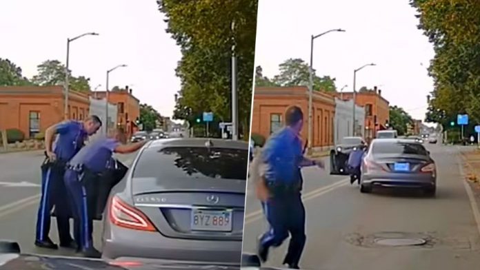 En las imágenes se muestra el terror que vivió un policía de Massachusetts al ser arrastrado durante una intervención vehicular.