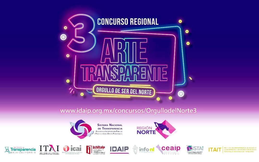 Culiacán, Sin.- Con el objetivo de contribuir a la creación de una cultura por la transparencia, así como el respeto al derecho humano del acceso a la información y la protección de datos personales la Región Norte del Sistema Nacional de Transparencia (SNT), de la cual forma parte la Comisión de Acceso a la Información Pública de Sinaloa (CEAIP) y otros Órganos Garantes de la mencionada región, invitan a participar en la tercera edición del concurso “Arte Transparente. Orgullo de ser del Norte”