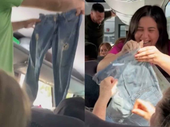 En el video se observa el momento en el que descubren que los pantalones estaban rotos, sucios y con mal olor, asegurando que el olor era a “melcocha”.
