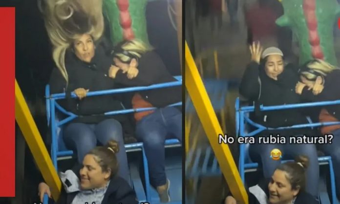 Así que si tú eres amante de esta clase de atracciones pon mucha atención porque no querrás que te pase lo que le ocurrió a esta desafortunada mujer que quedó al descubierto cuando se le voló la peluca que traía puesta.