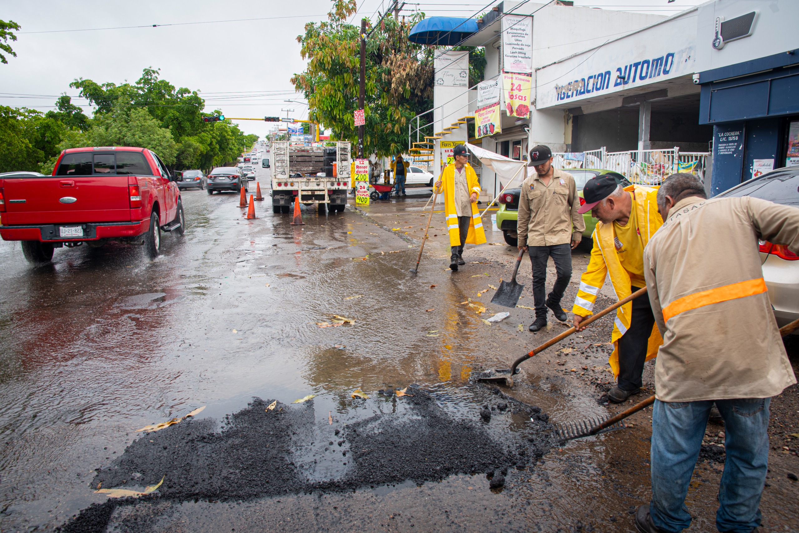 Culiacán, Sin.- La Secretaría de Obras y Servicios Públicos del Ayuntamiento de Culiacán ha puesto en marcha acciones de bacheo con la aplicación de mezcla fría especial para trabajar en ambientes húmedos, esto en respuesta a las recientes lluvias puntuales provocadas por la depresión tropical “Norma”.