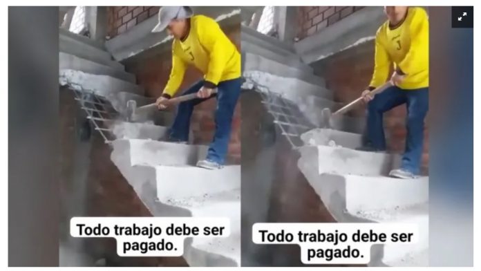 “Todo trabajo debe ser pagado”, se puede leer en el video como una declaración del albañil, quien se muestra decidido a tomar medidas ante la falta de compensación.