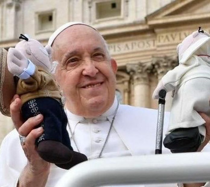Luego de que se vitalizara el video, la cuenta oficial del Dr. Simi compartió las fotos del momento en el que los peluches llegaron a manos del santo pontífice.