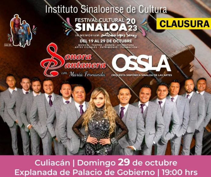 Culiacán, Sin.- Con un gran espectáculo al aire libre, este domingo cierra el Festival Cultural Sinaloa 2023, a partir de las 19:00 horas en la explanada de Palacio de Gobierno, con la presencia de la Sonora Santanera como parte de su gira Tour Sinfónico, en un megaconcierto con la Orquesta Sinfónica Sinaloa de las Artes.
