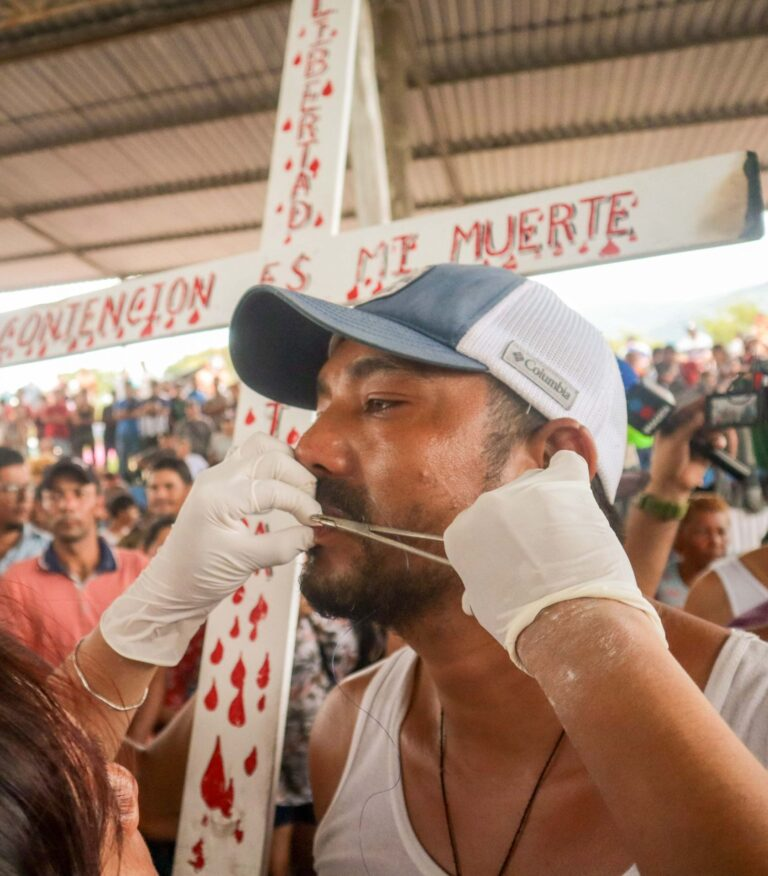 “Para que nos escuchen y primeramente Dios, él abra puertas. (Hemos pasado) hambre, cansancio y la familia con la pobreza”, afirmó Uriel Valladares, originario de Honduras, quien decidió suturarse la boca.