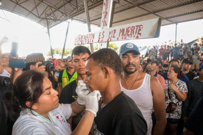 “Para que nos escuchen y primeramente Dios, él abra puertas. (Hemos pasado) hambre, cansancio y la familia con la pobreza”, afirmó Uriel Valladares, originario de Honduras, quien decidió suturarse la boca.