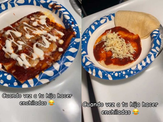 Una madre de familia compartió apenada la forma en la que su hija preparó unas enchiladas rojas luego de que ella decidió grabar un tutorial de dicho platillo con la intención de imitar a los influencers.