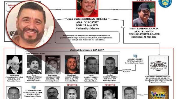 Juan Carlos Morgan fungiría como “jefe de plaza” del grupo delictivo en Nogales, donde también se identificaron vínculos con empresas como un restaurante (con razón social “Habaneros”) y una minera, Morgan Golden Mining, ésta con sede en Hermosillo.