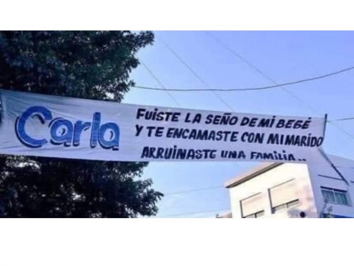 Carla: Fuiste la seño de mi bebé y te enca…. maste con mi marido. Arruinaste una familia…”, a la que uno de los presentes decidió tomarle foto al mensaje y lo compartió en redes sociales.