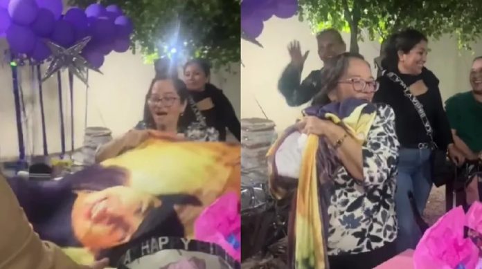 En una emotiva y sorprendente historia, una abuelita se conmovió en redes al recibir un regalo muy especial que le entregaron sus nietos. El obsequio era una bonita cobija, con el rostro de su cantante favorito y al desenvolverla sus ojos se deslumbraron y llenaron de alegría al ver la textura y colores.