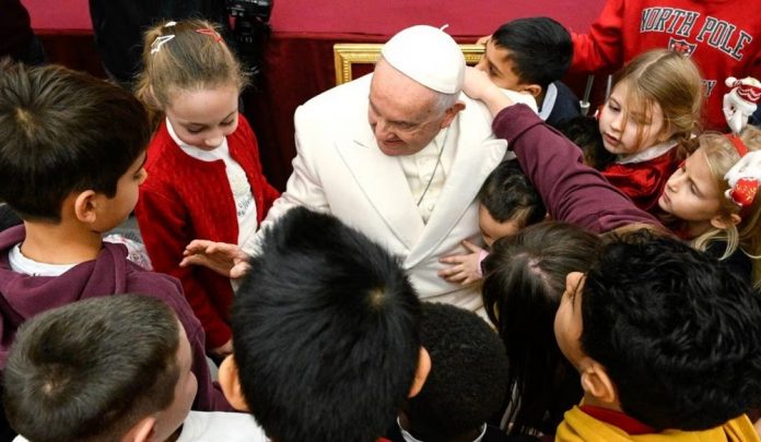 El Pontífice celebró con una simple fiesta con familias necesitadas en el Aula Pablo VI del Vaticano