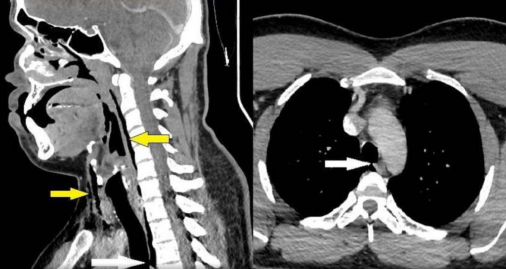 “Las perforaciones traqueales son causadas por lesiones iatrogénicas o traumáticas después de una tiroidectomía, intubación traumática, procedimiento de traqueotomía percutánea. Es muy difícil que ocurra”, reporta BJM Journals.