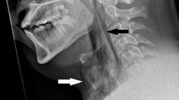 El accidente ocurrió cuando el hombre, con antecedentes de rinitis alérgica, conducía su automóvil con el cinturón de seguridad puesto. De inmediato su cuello se inflamó, y una radiografía reveló su padecimiento.