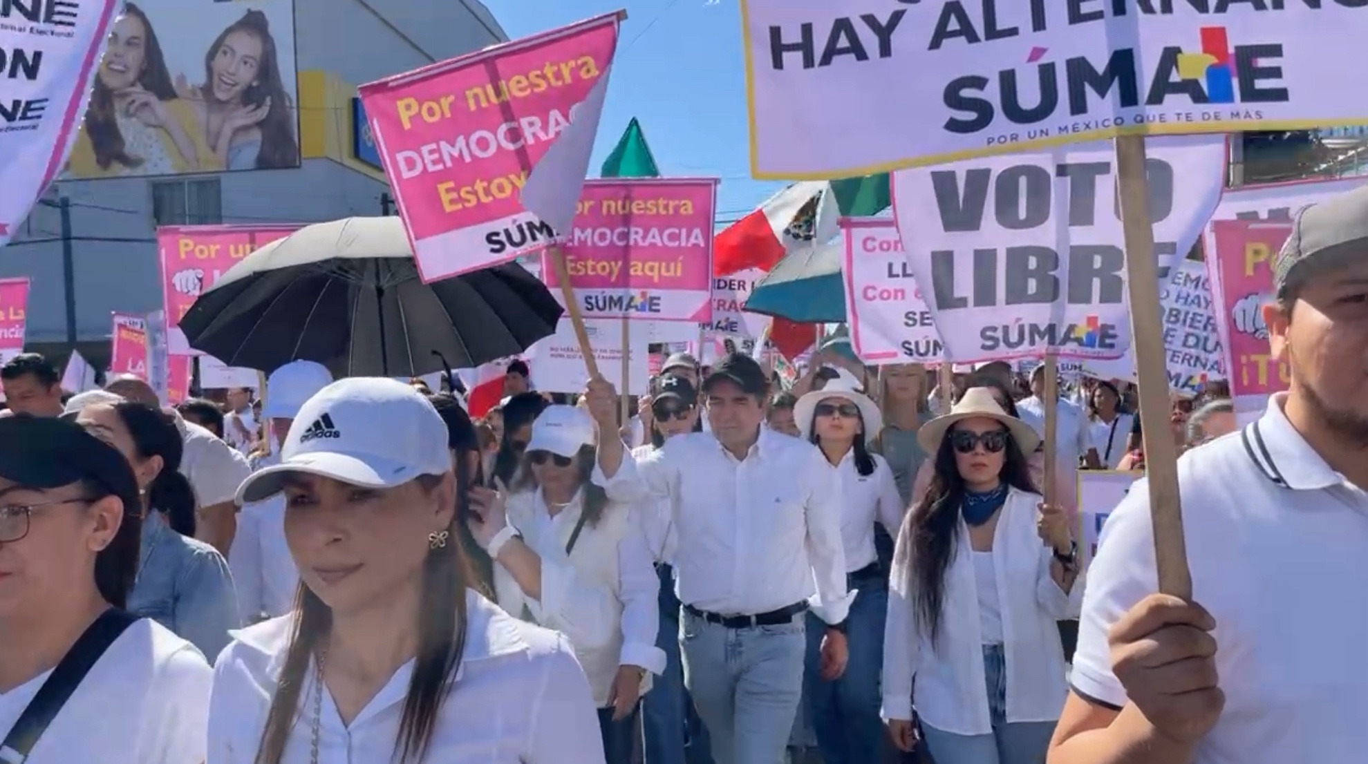 Con pancartas y mantas con mensajes en “defensa” del INE, militancia y simpatizantes de los partidos de oposición marcharon sobre la principal avenida de Culiacán, convocados en la capital de Sinaloa por la organización “Súmate Sinaloa”.