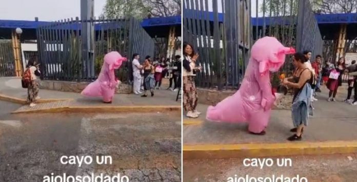 El video, compartido en la cuenta de TikTok @soyelpeps27, captura la triste escena donde un joven, vestido con una botarga de ajolote color rosa, baja la cabeza con pesar tras ser rechazado por su amada. La canción de fondo, “Yo no nací para amar”, de Juan Gabriel, añade un poco de melancolía a la situación.