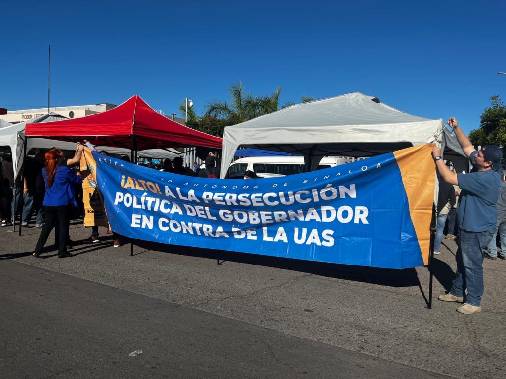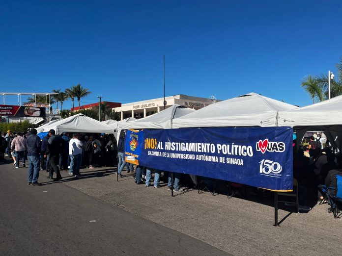 Culiacán, Sin.- Por tercera ocasión, alumnos, docentes y trabajadores de la Universidad Autónoma de Sinaloa (UAS), se plantaron en los accesos del Congreso del Estado de Sinaloa, para manifestarse por lo que aseguran es una persecución política contra sus autoridades y un ataque a la autonomía universitaria.