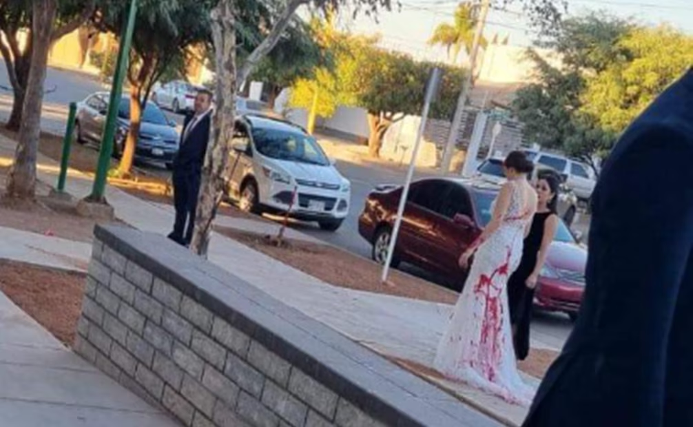 De acuerdo con un hilo que fue publicado por el usuario @fulanodeobregon, a través de su cuenta de X, los novios originarios de Ciudad Obregón, se encontraban felices en la iglesia esperando caminar al altar, cuando de pronto 3 hombres, de quienes se desconoce su identidad, se acercaron a la joven para arrojarle un bote de pintura roja sobre su vestido blanco, con el afán de arruinar su boda, dejando horrorizados a los invitados, ya que pensaron que era sangre.