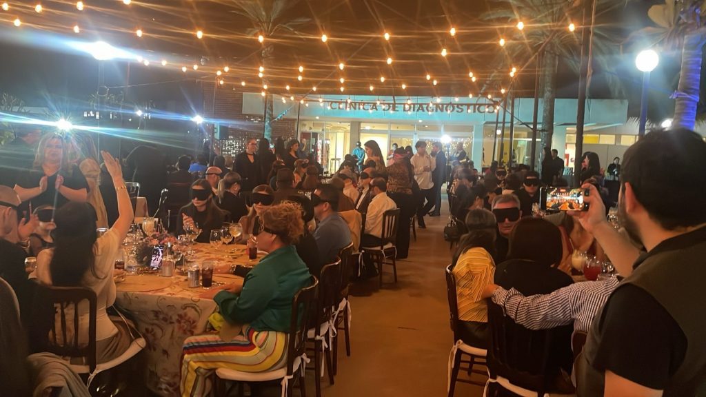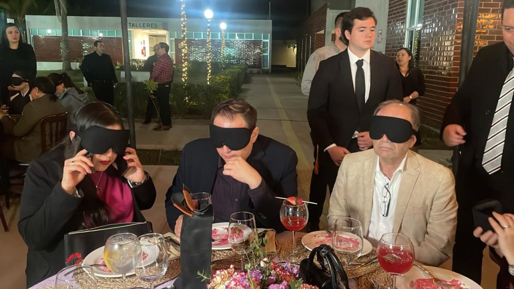 Gracias a ti, hasta luego – respondió el titular del COBAES mientras vivía su experiencia sensorial en una mesa donde se encontraban otros comensales con antifaces en sus ojos para no ver nada.