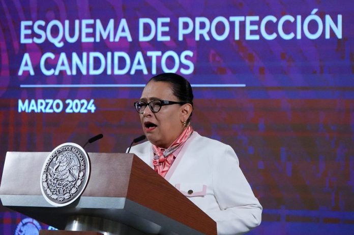 En la conferencia mañanera de este martes, la secretaria de Seguridad y Protección Ciudadana, Rosa Icela Rodríguez, expuso el protocolo establecido con el Instituto Nacional Electoral (INE) para que candidatos puedan solicitar protección al Gabinete de Seguridad de López Obrador.