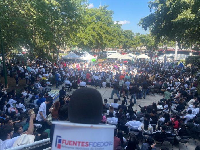 Culiacán, Sin.- Cientos de universitarios se plantaron la mañana de este viernes a las afueras de Palacio de Gobierno, esperando el arribo del presidente de la República, Andrés Manuel López Obrador, quien tiene una reunión hoy en dichas instalaciones.