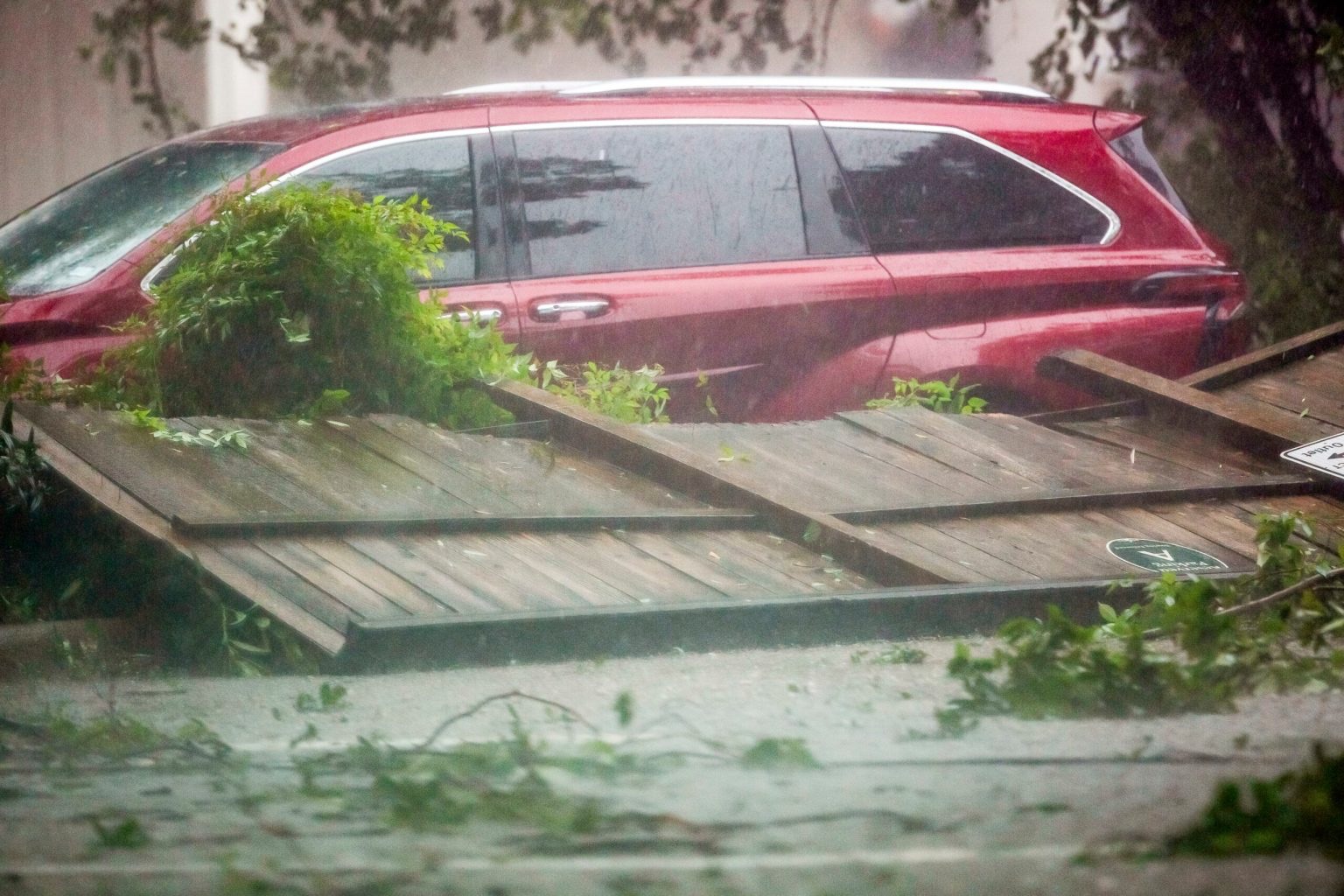 Tras tocar tierra sobre las 4 de la madrugada, hora local, las primeras imágenes diurnas muestran calles inundadas, árboles caídos y escombros en poblaciones costeras como Surfside Beach, donde el tráfico de vehículos permanece clausurado.