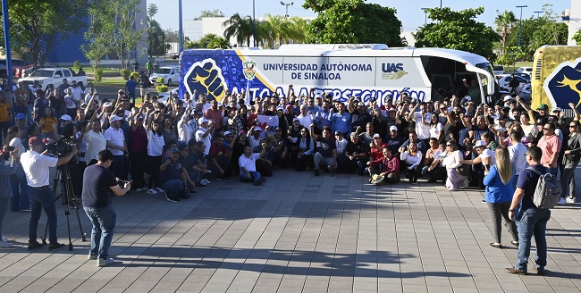 Culiacán, Sin.- Eufóricos y con ánimos de defender la dignidad y el respeto a la Autonomía Universitaria, la comunidad de la Universidad Autónoma de Sinaloa (UAS), a bordo de diez camiones y dos Sprinters, salió en caravana rumbo a la Ciudad de México con la finalidad de informar al Presidente Andrés Manuel López Obrador de la situación que prevalece en Sinaloa, y así romper el cerco mediático que existe en el estado.