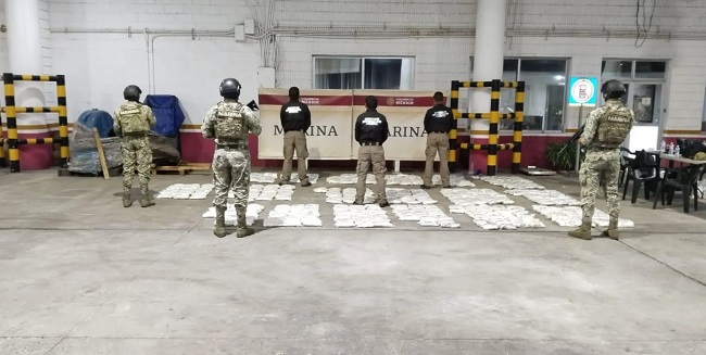 En la aduana del puerto fueron asegurados 3 mil 840 rollos de película plástica emplayada, que contenían 592 bolsas de metanfetamina