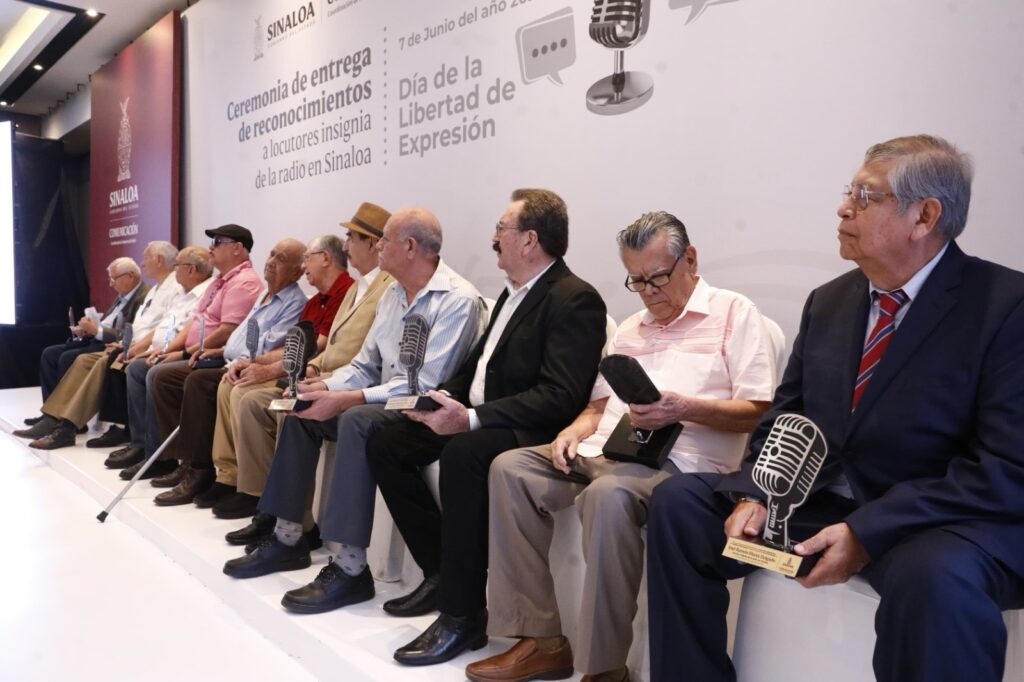 En esta significativa ceremonia se reconoció y honró a: Ramón Robledo López, Francisco Pérez Vega, Francisco Daniel Montijo Valdez, Jesús Félix Ávila, Guillermo Macedo Zevada; de la ciudad de Culiacán, Arnoldo Corrales Bazúa, Benito Pérez Guillén, José Ramón Bojórquez; de Los Mochis, Arnoldo Valenzuela Meza; de Guamúchil, Juan de Dios Méyer Félix; de Guasave y Manuel Meléndez Franco y José Ramón Flores Delgado, de Mazatlán, locutores con hasta 65 años de trayectoria ante los micrófonos, a quienes se les entregó un reconocimiento y un estímulo económico.