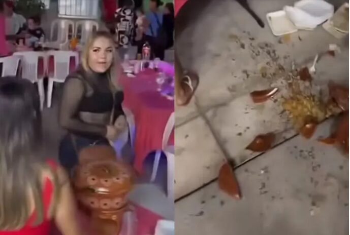 Una mujer fue apodada “Lady Hambreada” tras viralizarse un video donde lanza una cazuela al piso al negarle un taco extra en un evento