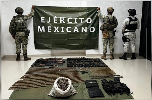 Elementos del Ejército Mexicano, en coordinación con la Guardia Nacional, la Secretaría de Marina, la Secretaría de Seguridad y Protección Ciudadana, la Fiscalía General de la República, la Fiscalía General del Estado y la Secretaría de Seguridad Pública de Sinaloa, a través de la Policía Estatal Preventiva, aseguraron armas, municiones y equipo táctico.