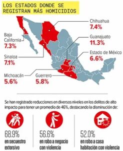 Veintisiete homicidios menos diarios. Treinta y dos por ciento (menos), pero uno, digamos, el número de 32% a lo mejor no es tan indicativo, como decir que cada día hay 27 homicidios dolosos menos, 27 personas que no fallecen diariamente por motivo de un homicidio doloso.