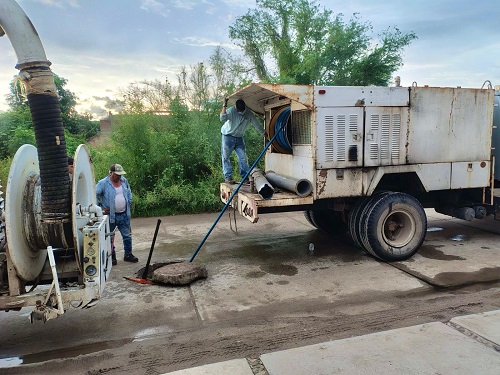 En atención a los reportes realizados por la ciudadanía y por indicación del alcalde Gildardo Leyva Ortega, personal de la Junta de Agua Potable y Alcantarillado del Municipio de El Fuerte (JAPAF) llevó a cabo durante la madrugada de este domingo importantes trabajos de mantenimiento en la red de drenaje de la cabecera municipal.