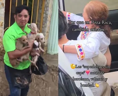 Se trata de Ricardo Villa, voluntario que, sin pertenecer a ninguna organización oficial, ha dedicado sus días a rescatar a personas y animales atrapados por las severas inundaciones en Poza Rica. Su historia se ha viralizado en redes sociales, donde miles lo reconocen como el “ángel guardián de Poza Rica”.