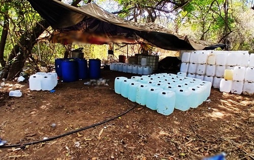 También fueron asegurados tres mil 400 litros y mil kilos de sustancias químicas, lo que representa una afectación a la delincuencia organizada por 473 millones de pesos.
